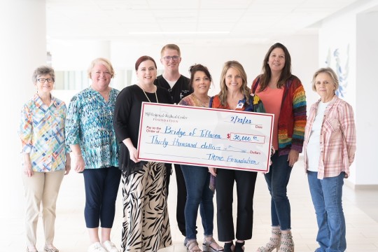 Pictured (L-R): Tony McBrayer; Chief Financial Officer of PB&J, Dr. Bill Hancock; TRMC Foundation Chairman and Physician, Joe Manning; TRMC Foundation Board Member, Tamara Branch; TRMC Foundation Legal Consultant, Dr. Margaret Richardson-Nixon; TRMC Foundation Board Member and Physician, Mandy Brooks; TRMC Foundation Director and Mary Perlis; TRMC Foundation Secretary/Treasurer.